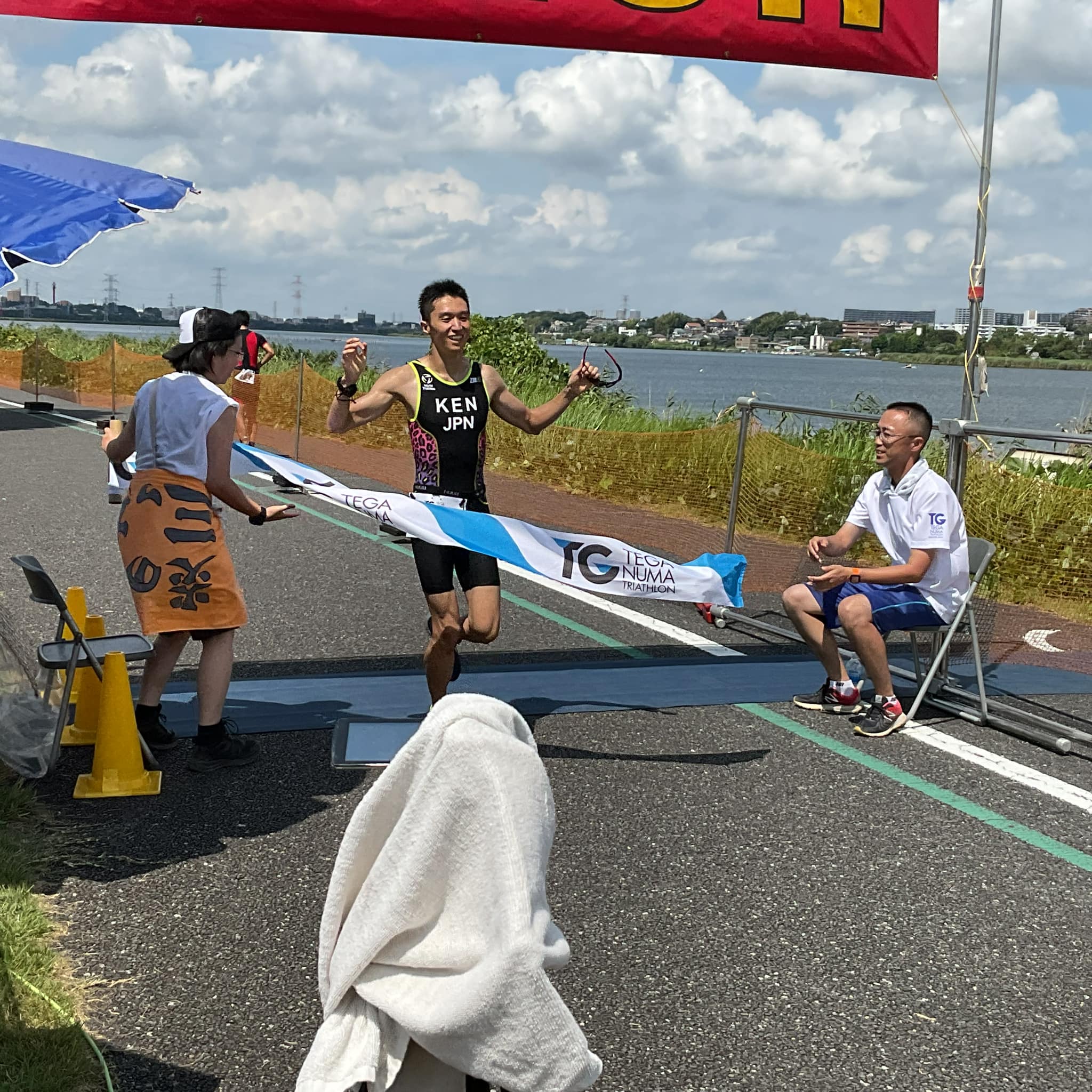 手賀沼トライアスロン 泳げ泳げ手賀沼 続々、ゴールしています。
